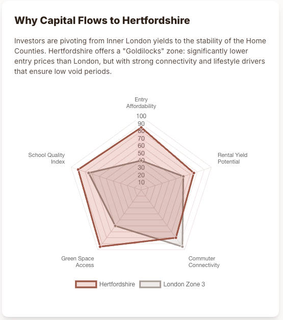 And right now, Hertfordshire sits squarely in that Goldilocks zone, neither too pricey nor too remote, neither too urban nor too suburban, offering precisely the blend of value and lifestyle that London has quietly priced itself out of.