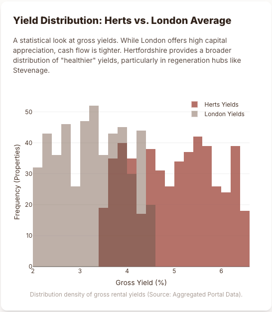 London absorbs the tax pain; Hertfordshire absorbs the demand.