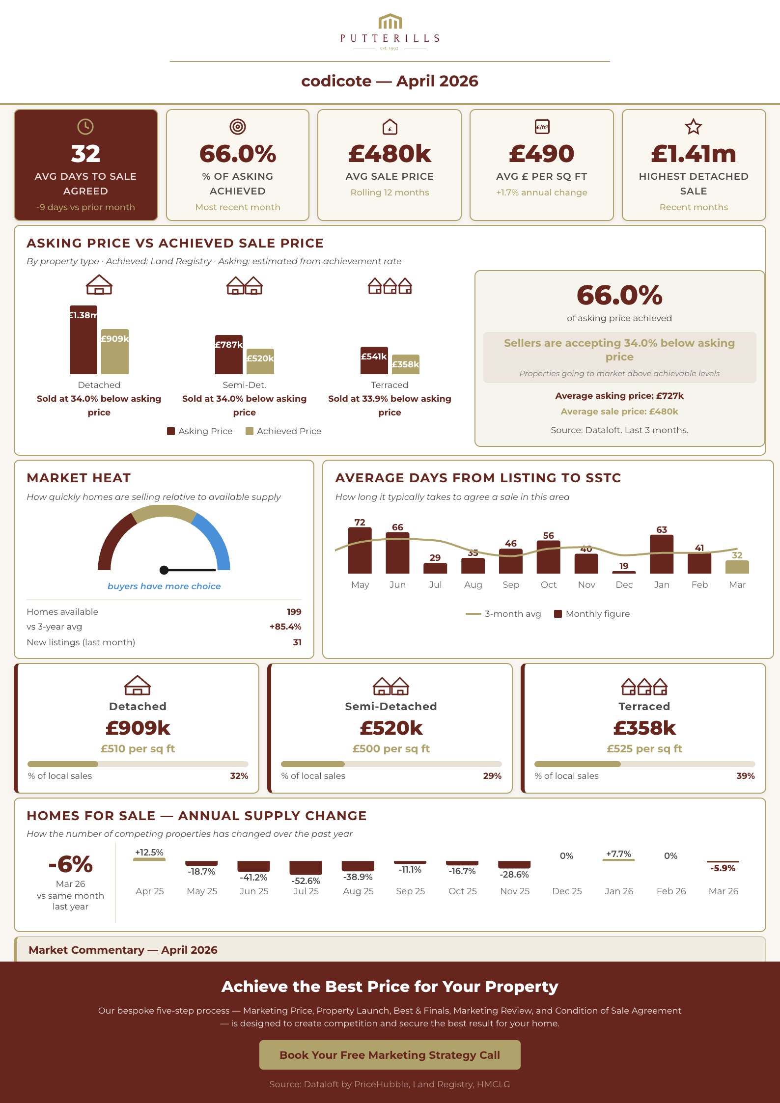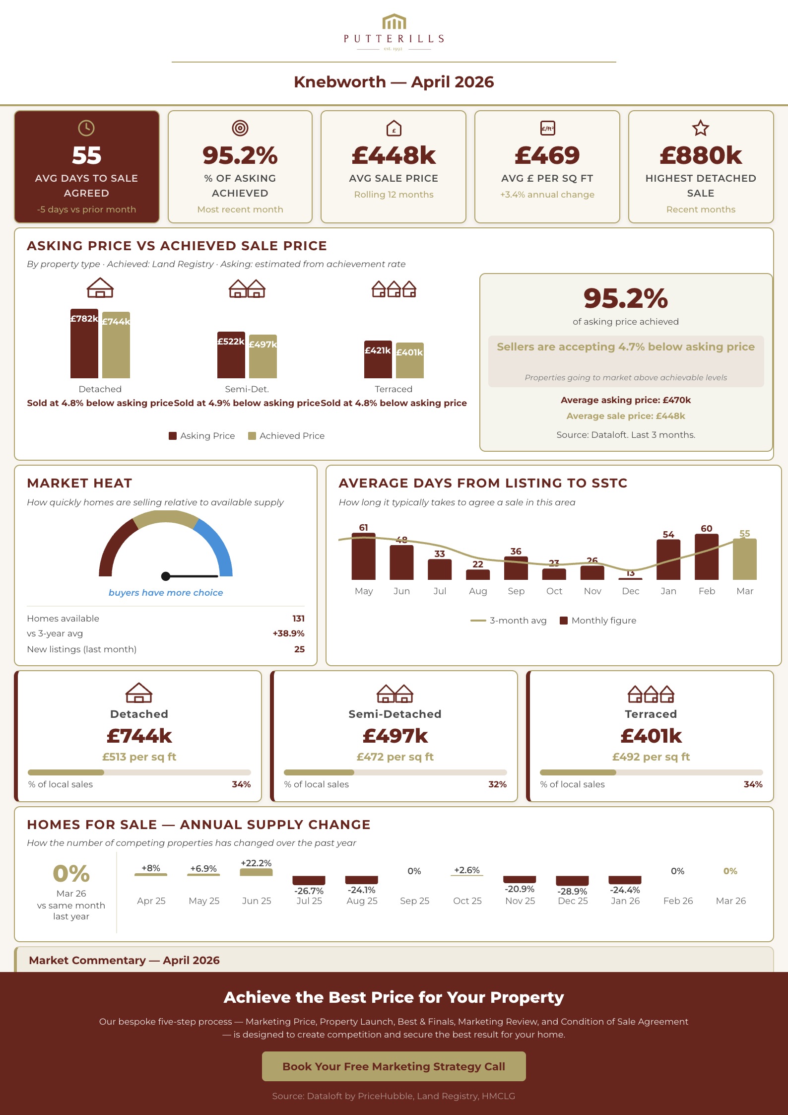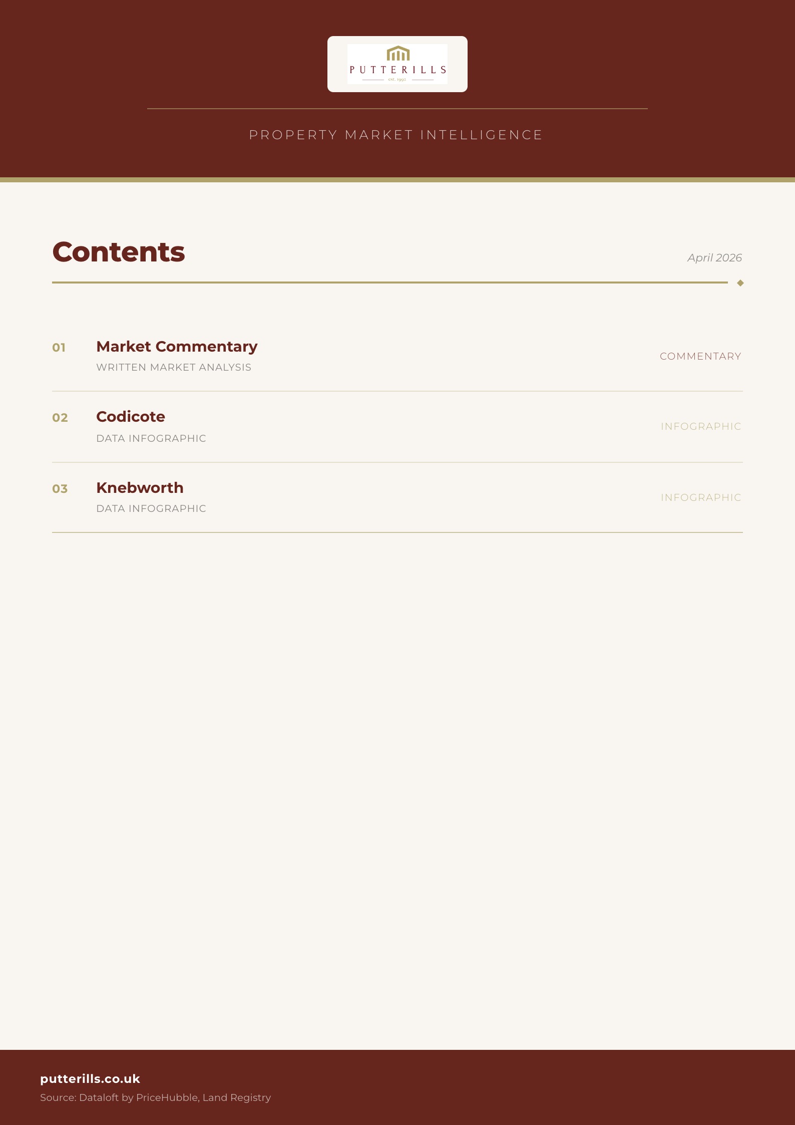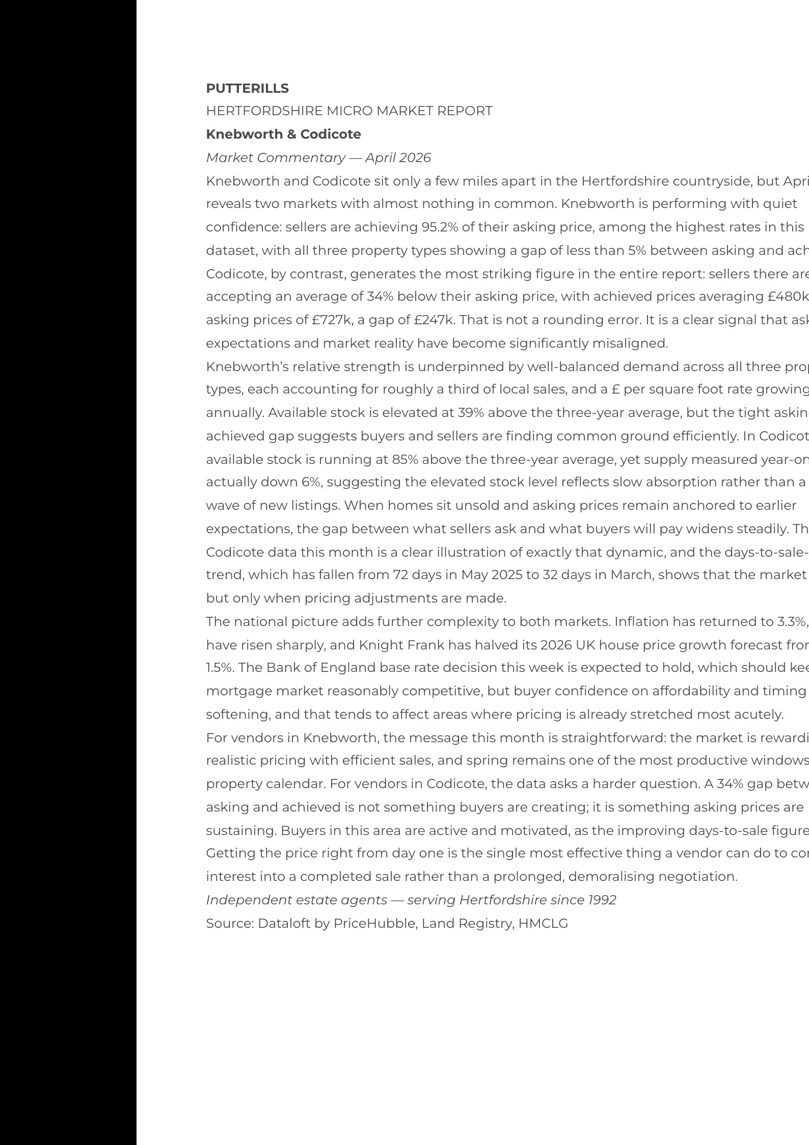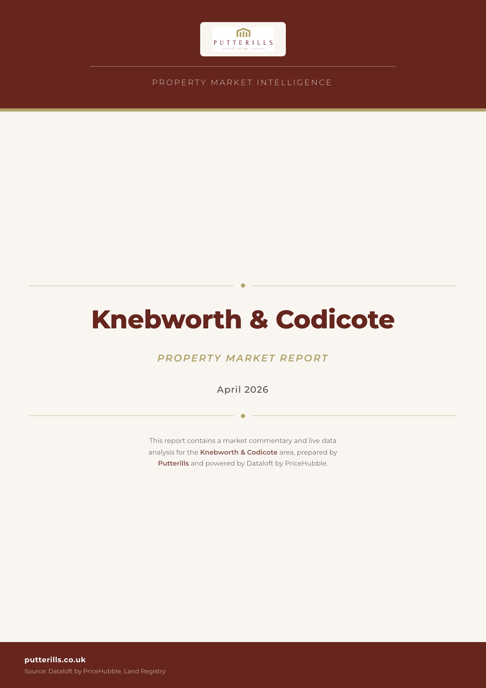 This report contains a market commentary and live data analysis for the Knebworth & Codicote area, prepared by Putterills