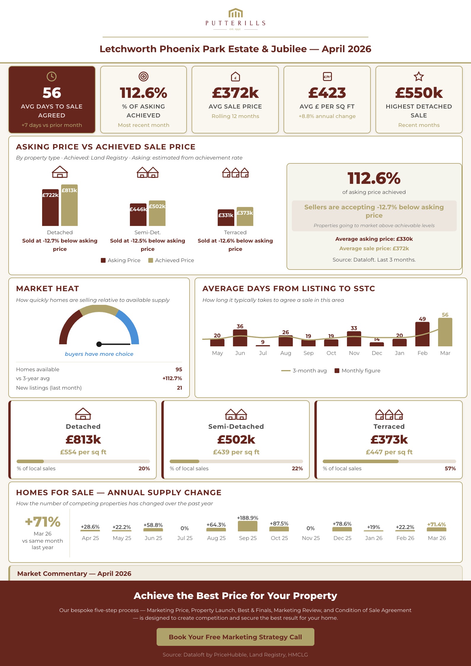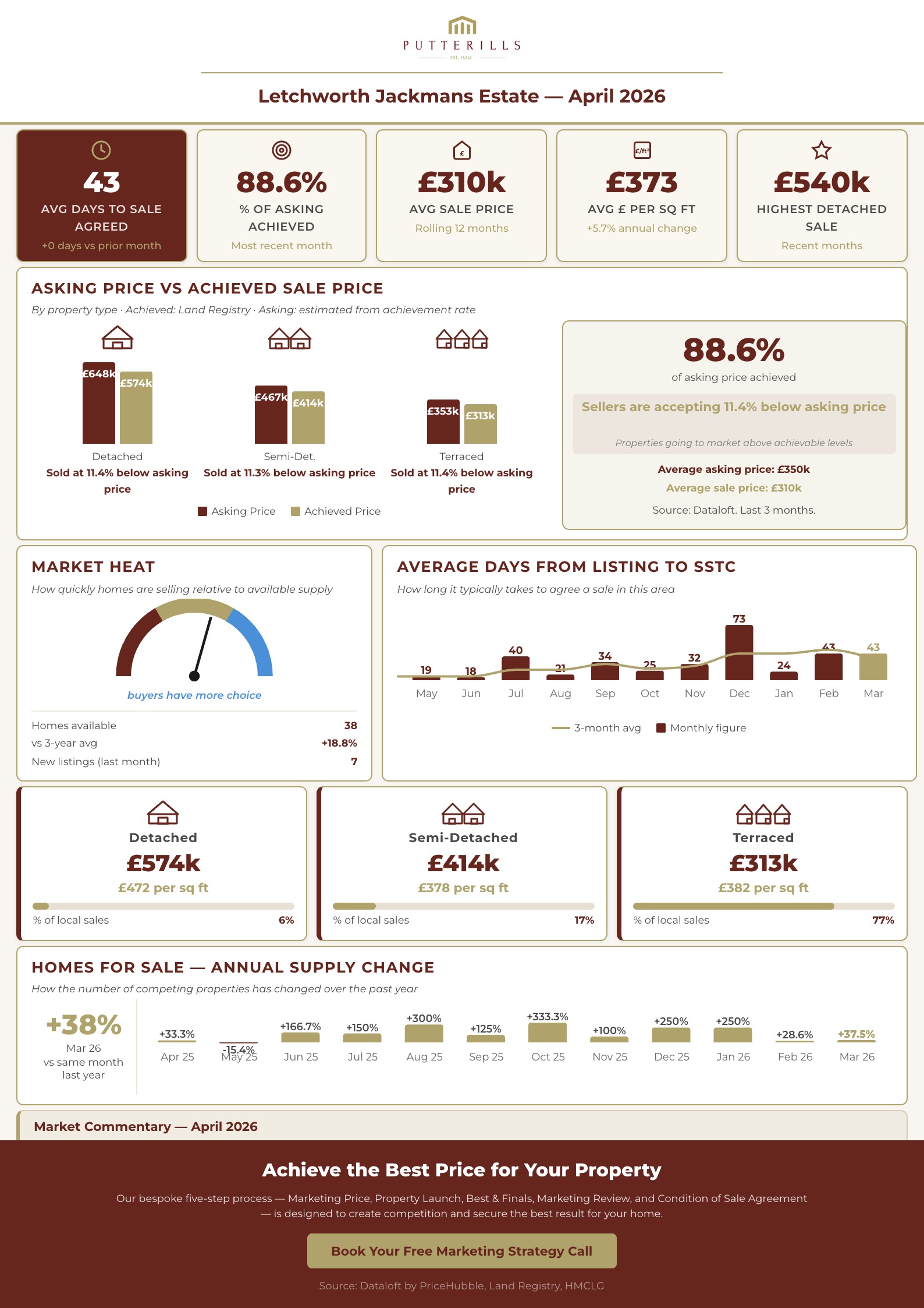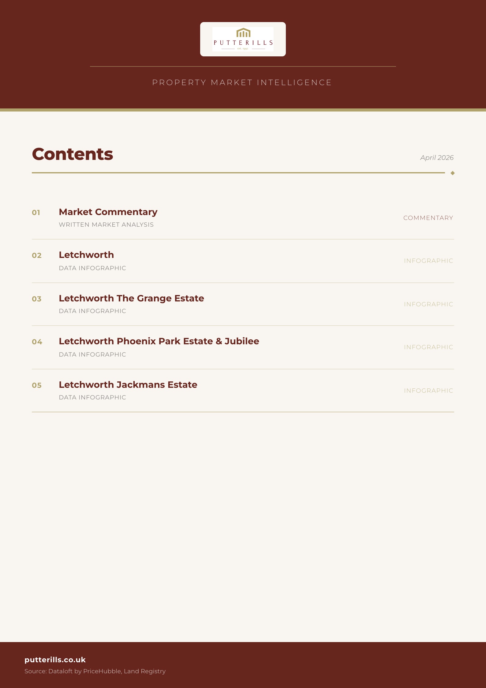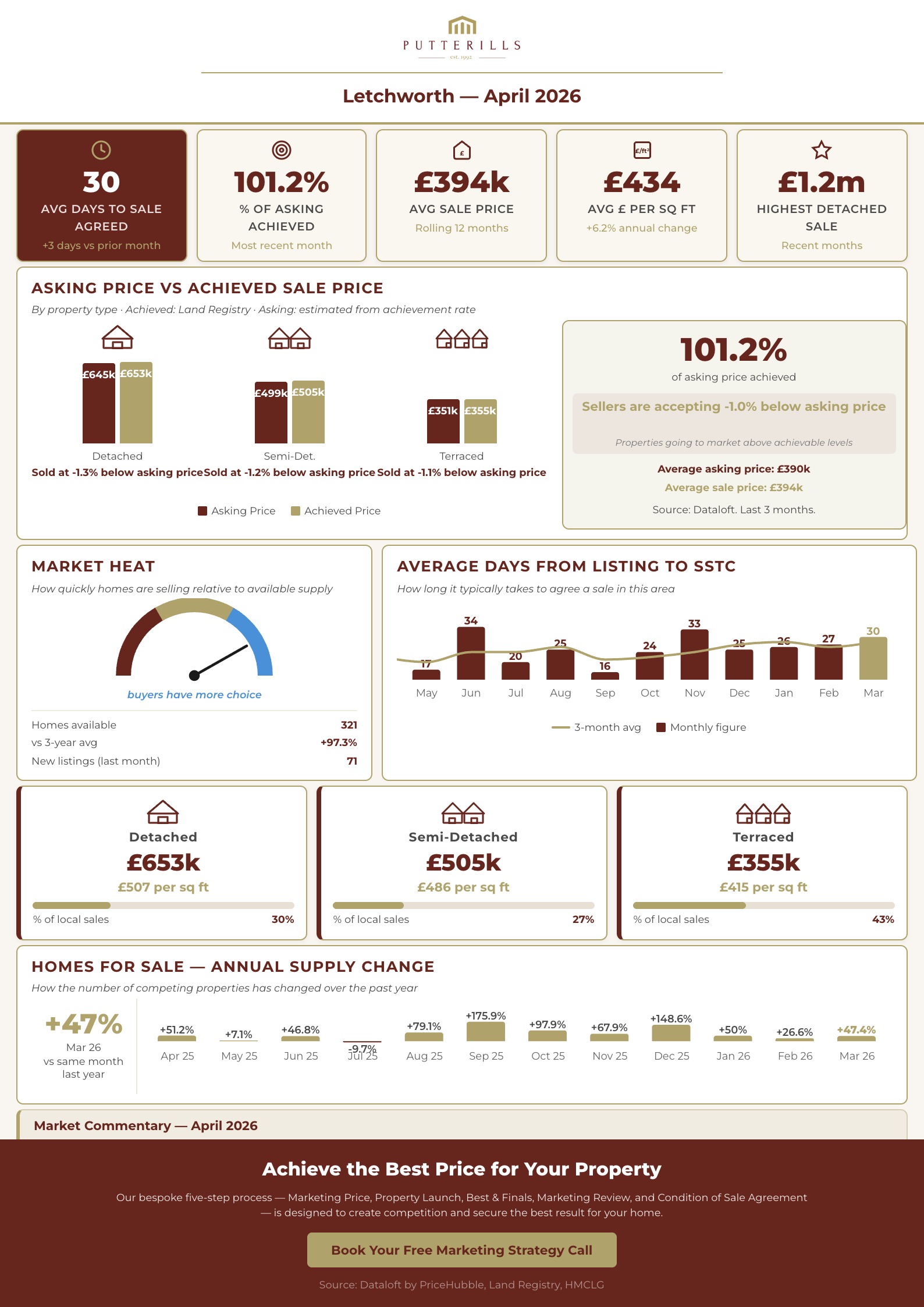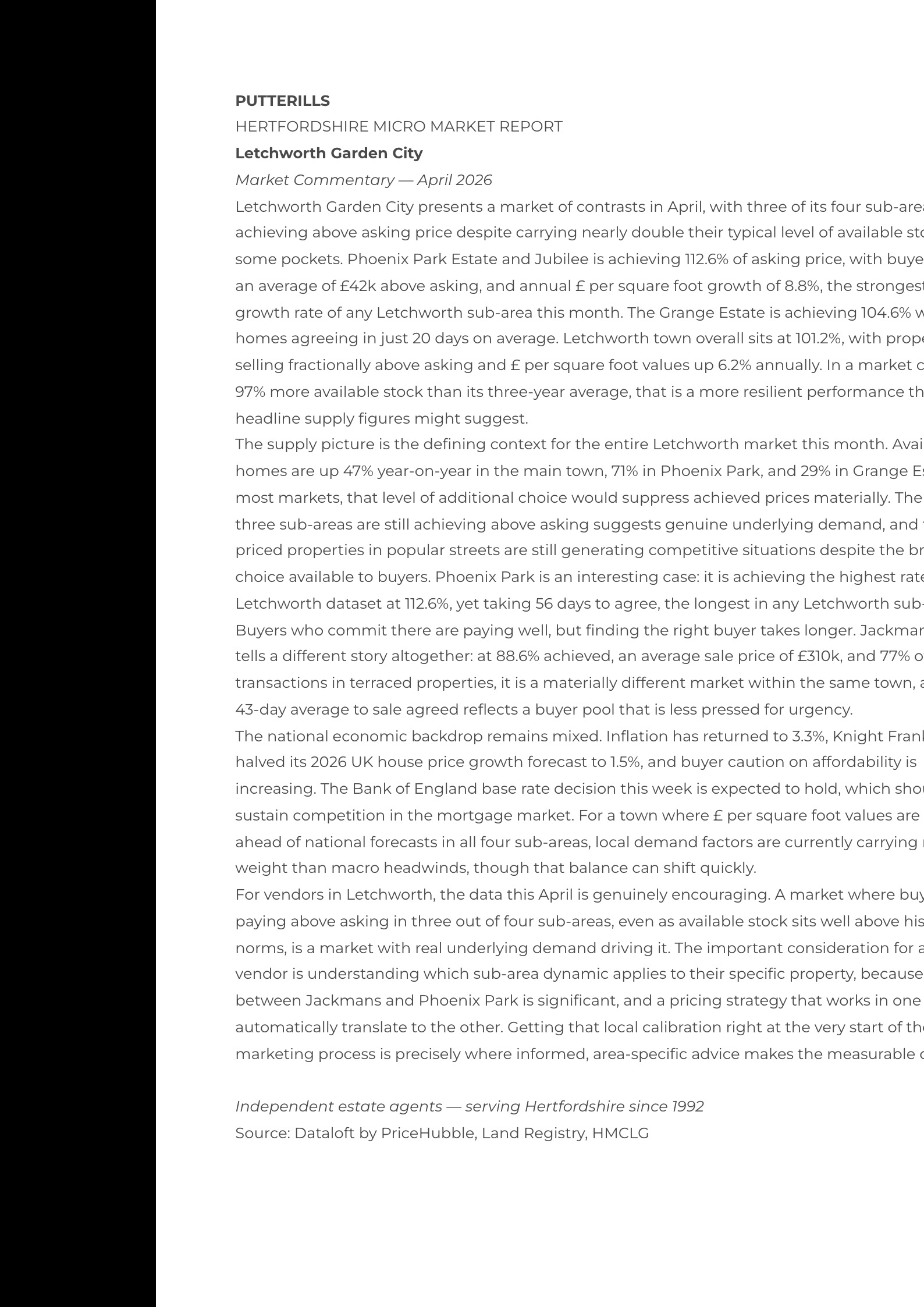 This report contains a market commentary and live data analysis for the Letchworth area, prepared by Putterills