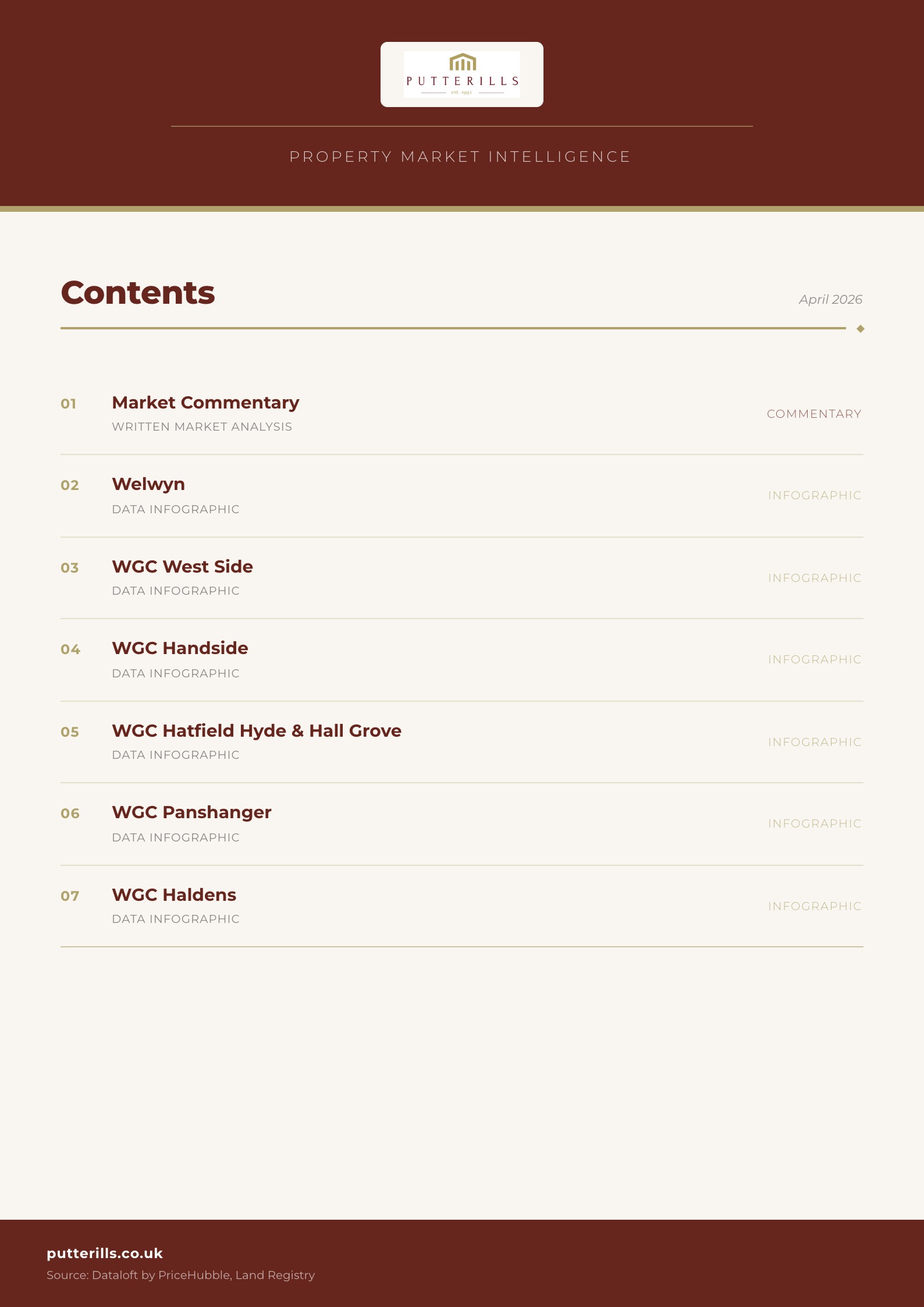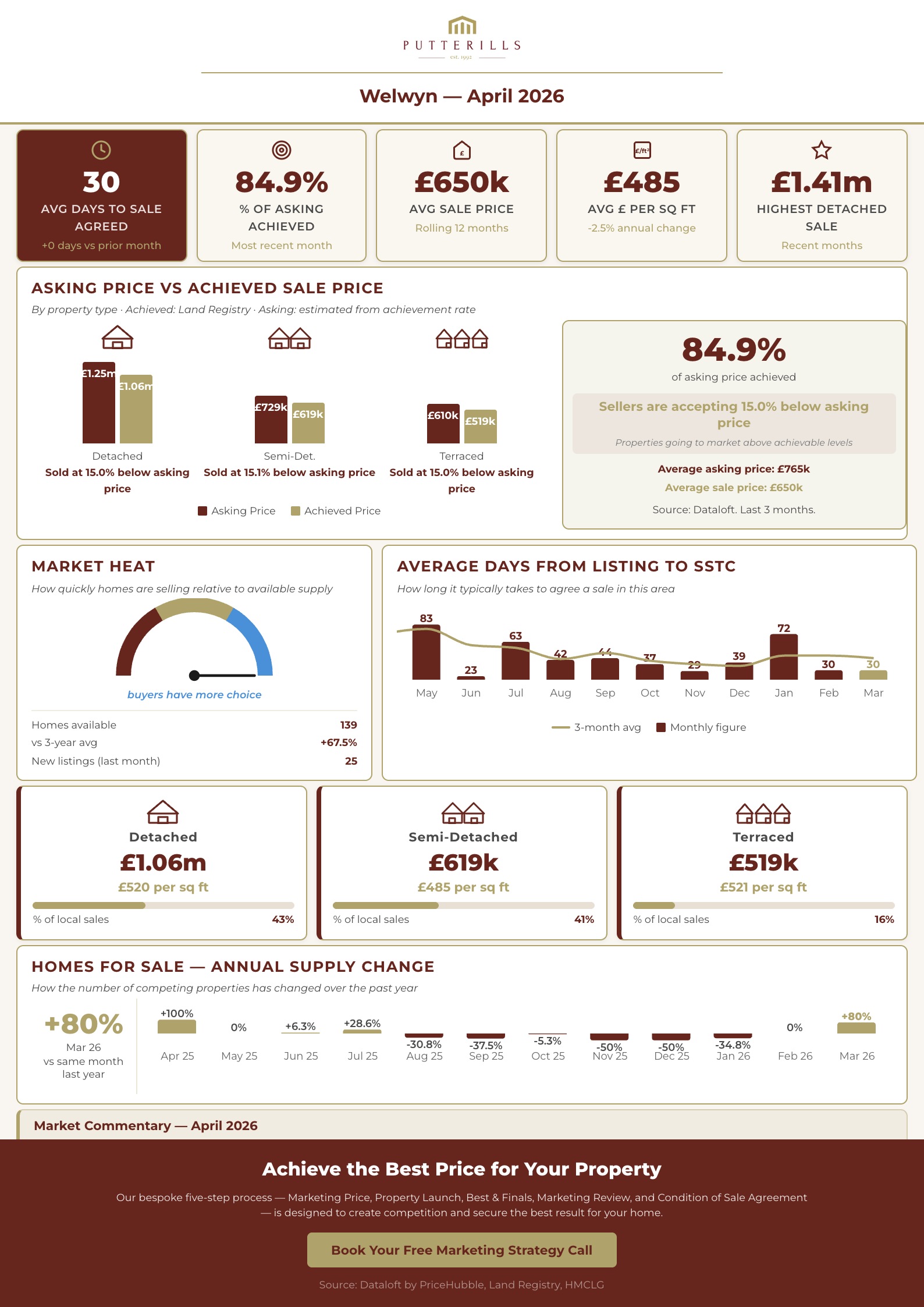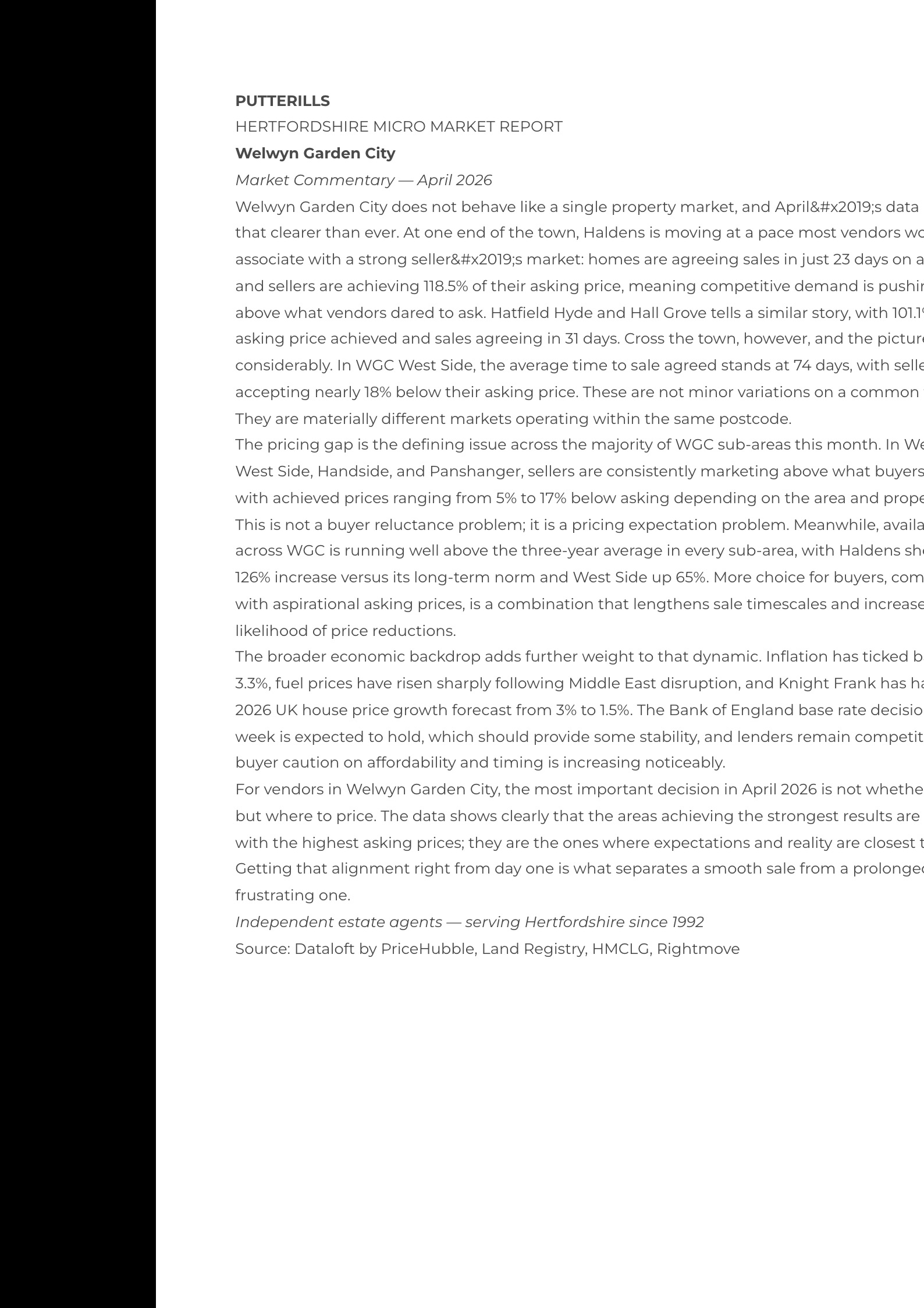 This report contains a market commentary and live data analysis for the Welwyn Garden City area, prepared by Putterills