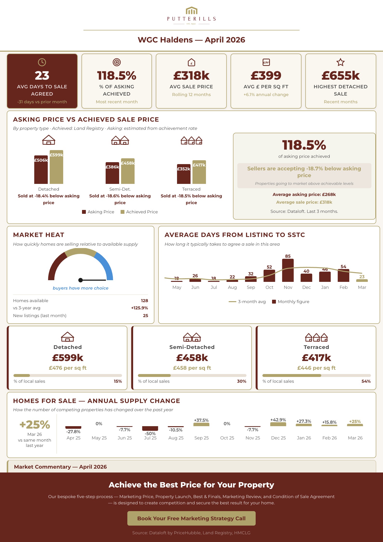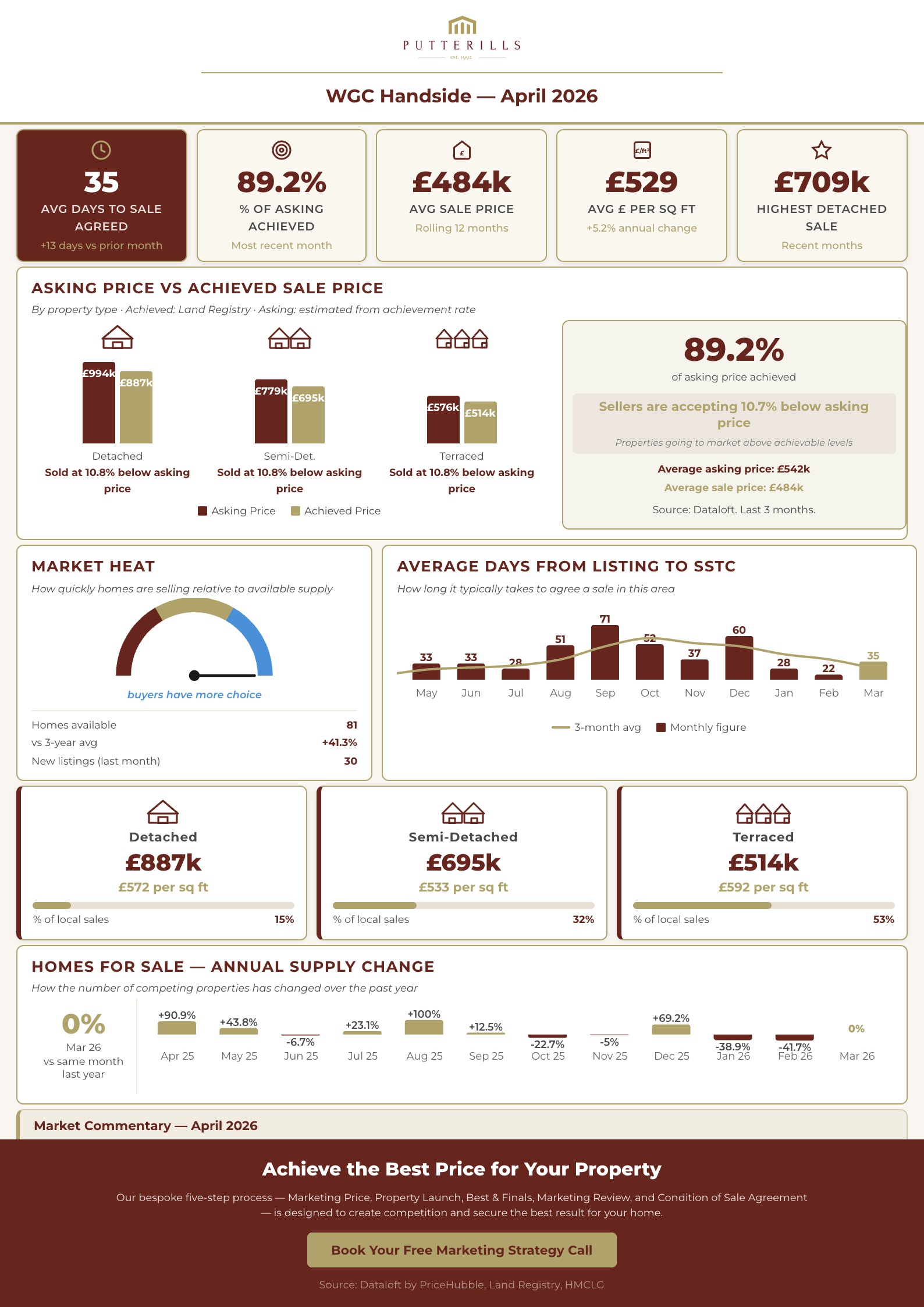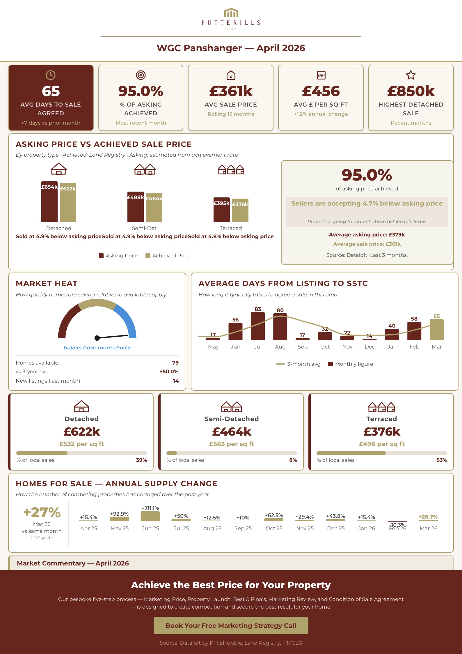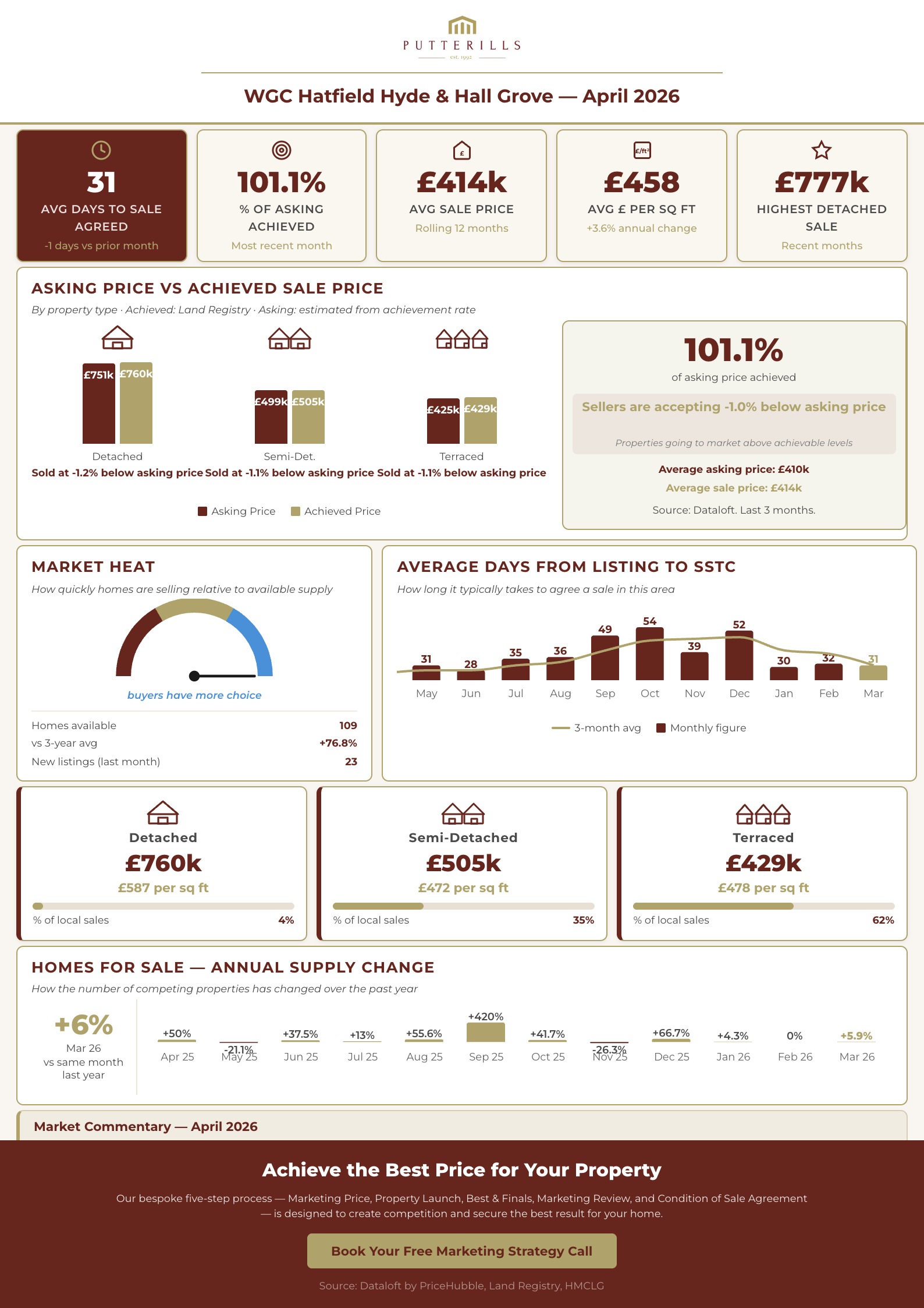 This report contains a market commentary and live data analysis for the Welwyn Garden City area, prepared by Putterills